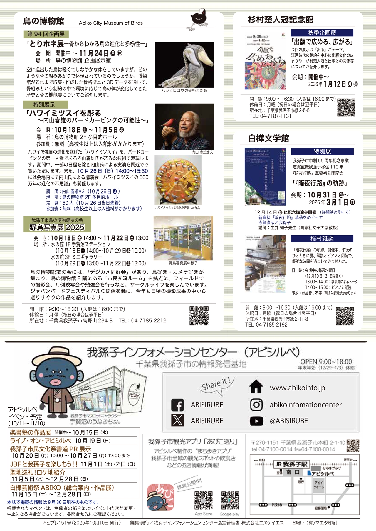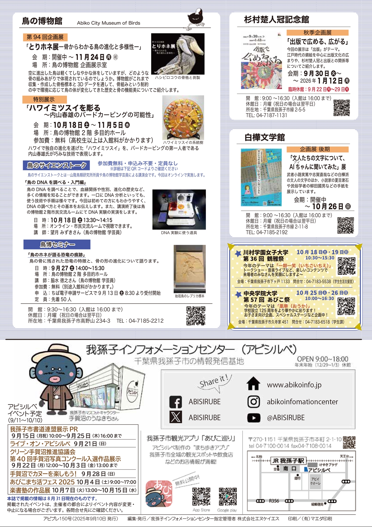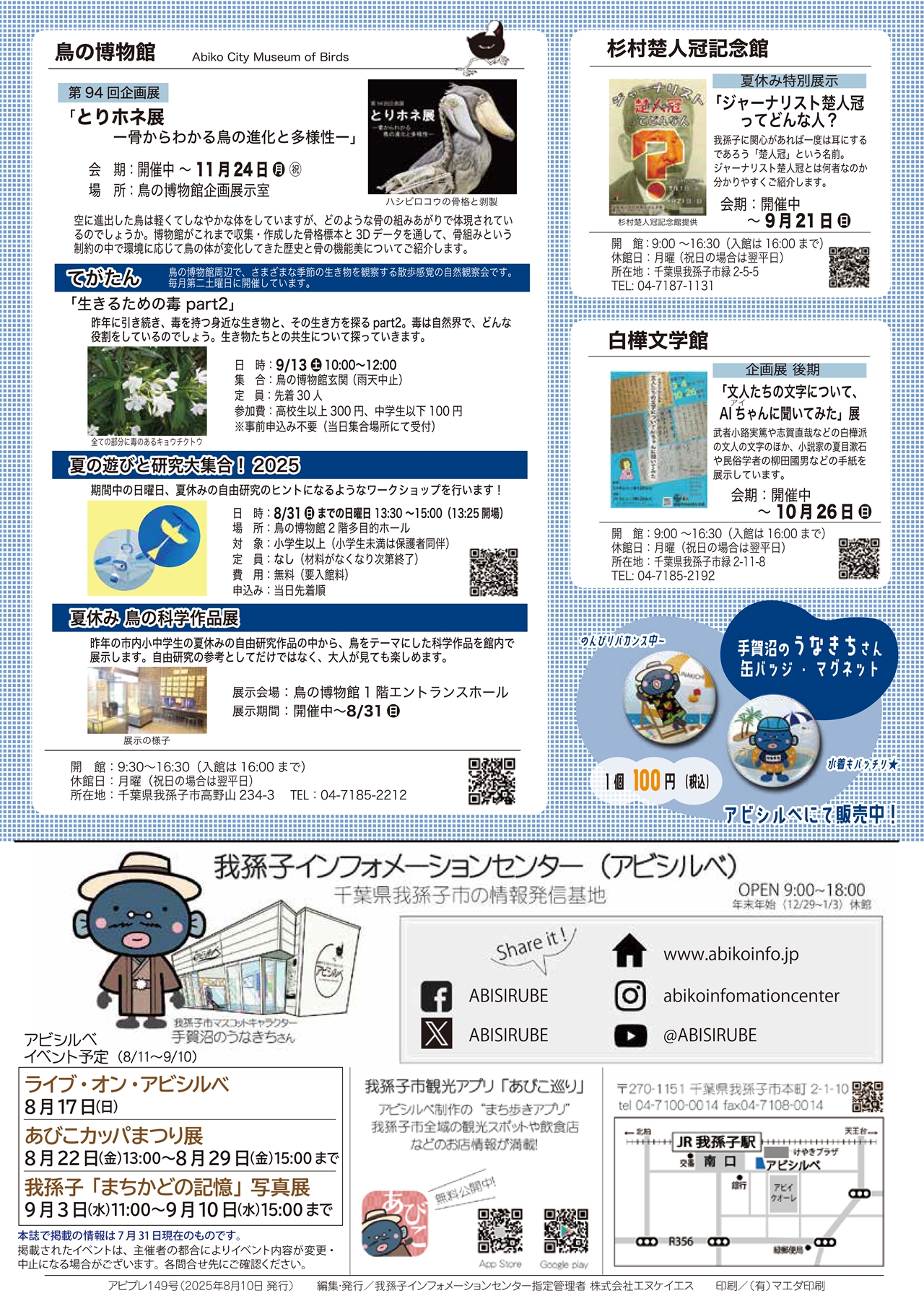 Abiko Information Press アビプレは我孫子インフォメーションセンターが月に1回全面フルカラーで発行する月刊情報誌です。