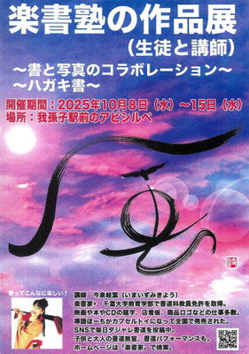 書と写真のコラボレーションやハガキ書など独創的な新しい書道の世界をご覧ください。